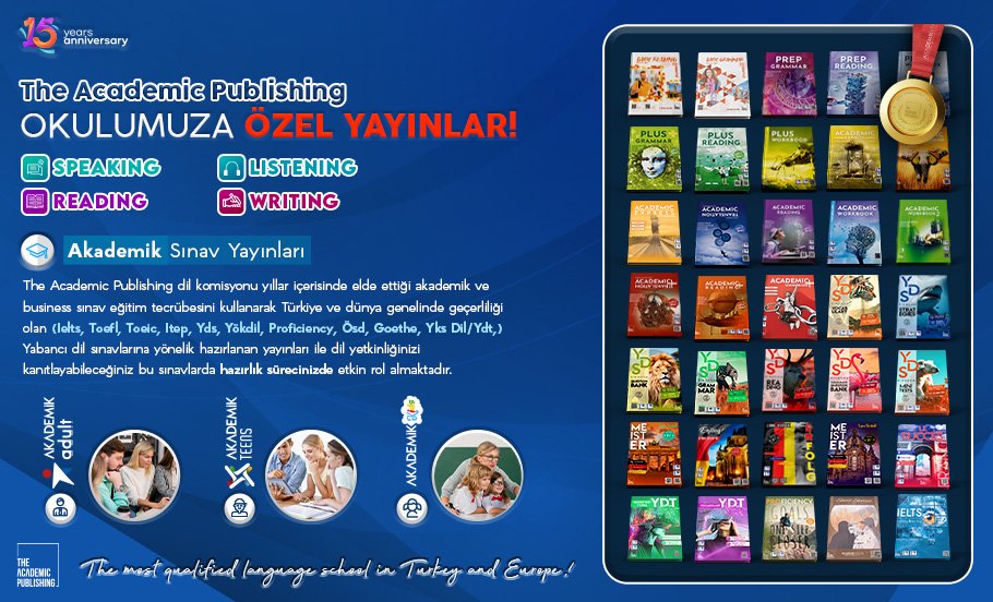 Türkiye’de ilk kez, yabancı dil eğitiminde Türk dil yapısına uygun olarak hazırlanan Londra merkezli yayın evimiz THE ACADEMIC PUBLISHING'in Native yazarları ve Türk Dilbilimcileri tarafından oluşturulan ulusal ve uluslararası yayınlarımız.